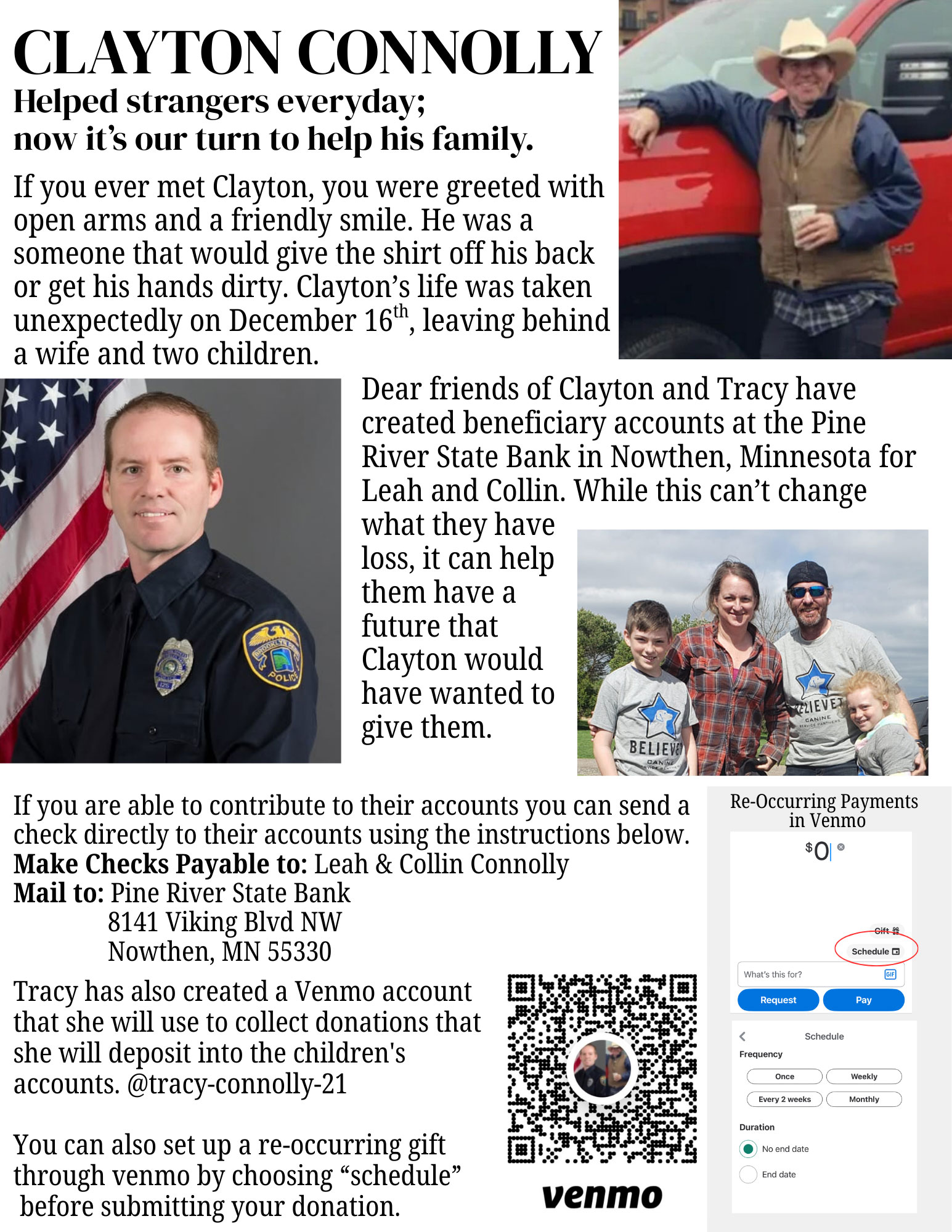 The most meaningful tribute to Clayton Connolly would be a community-wide recommitment to the values he embodied: vigilance for opportunities to help, willingness to inconvenience ourselves for others, and consistent investment in community relationships. This might mean stopping to help a stranded motorist (with appropriate safety precautions), checking on elderly neighbors during extreme weather, or simply being present and engaged in community life rather than retreating into private spaces.